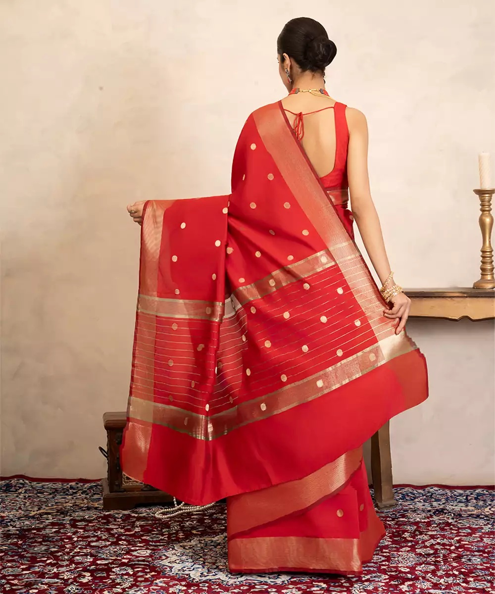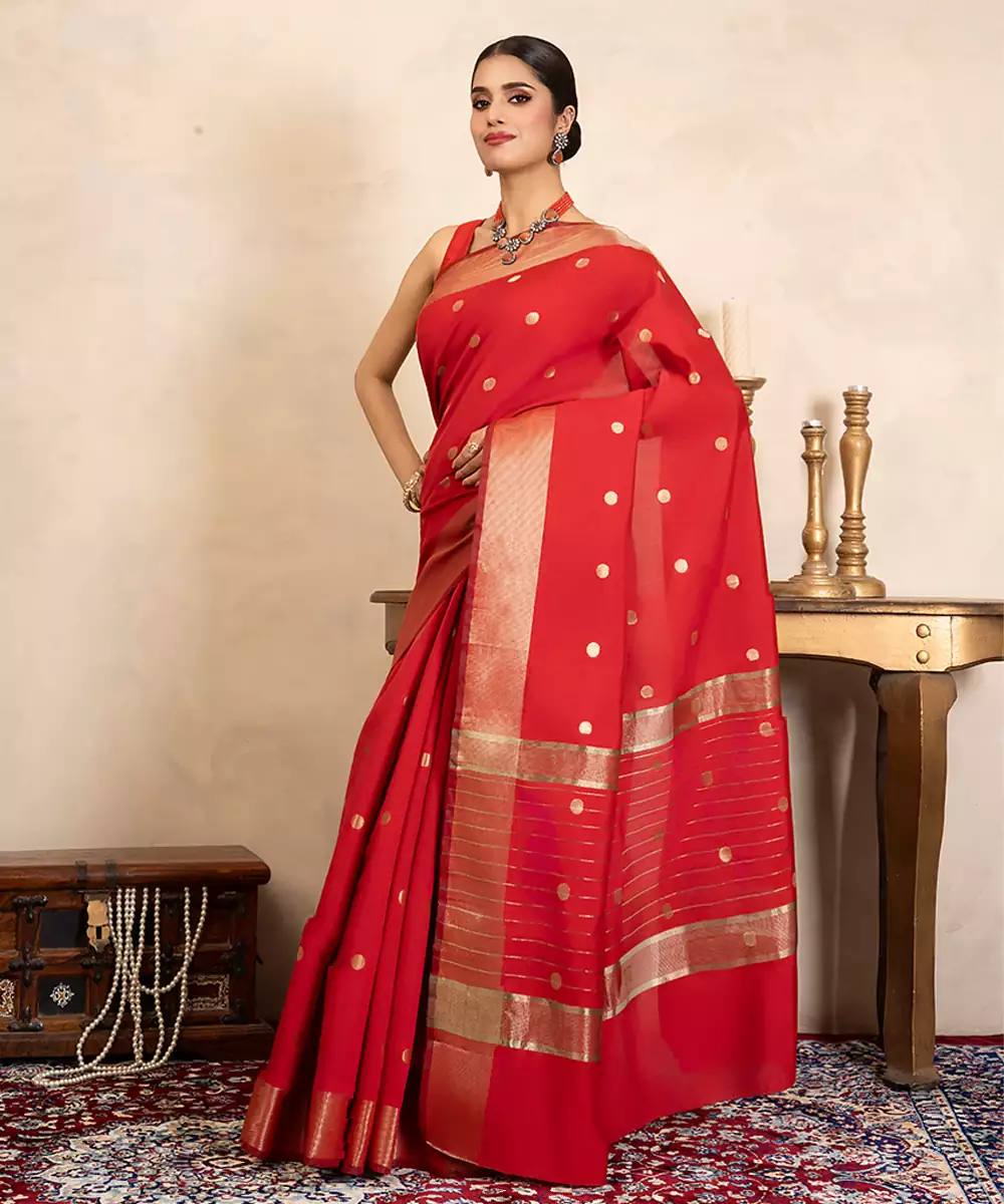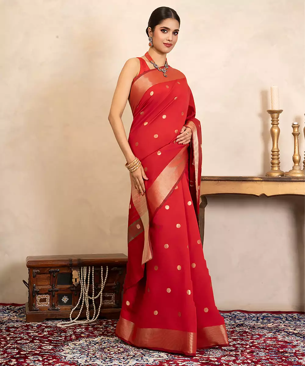 Red Handloom Chiffon Silk Saree