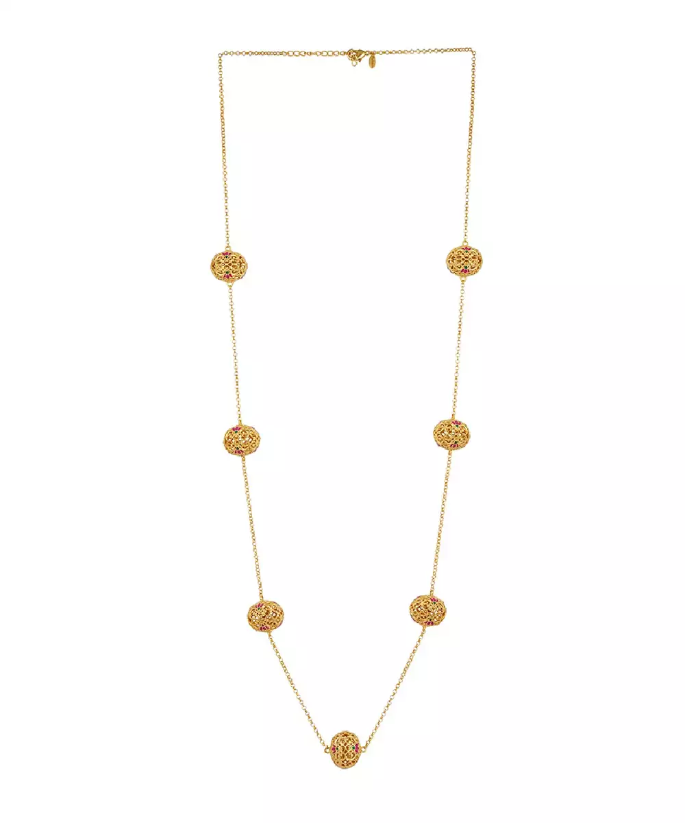 Lotus Globe Long Necklace In Pink Enamel