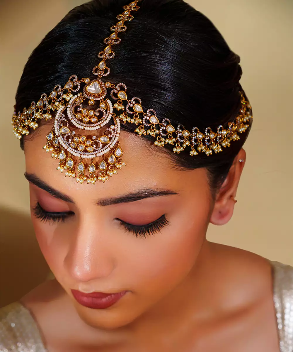 Featuring A Two Tone Finish Mathapatti Studded With Kundan Polki, Set In Mixed Metal. Perfect Wear For Festive Occasions Or Wedding Ceremonies.