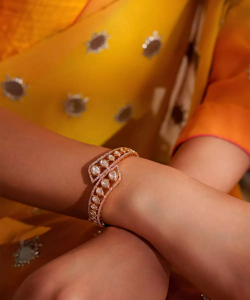 Featuring A Stylish Gold Finish Kundan Bracelet. Perfect Wear For A Wedding Or Festive Occasion.