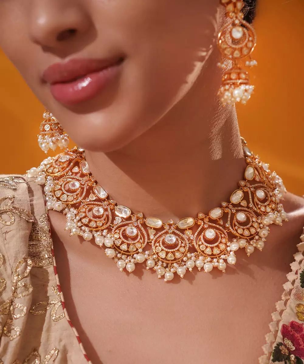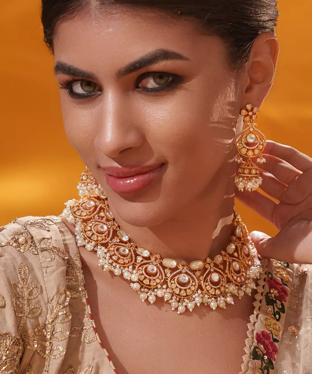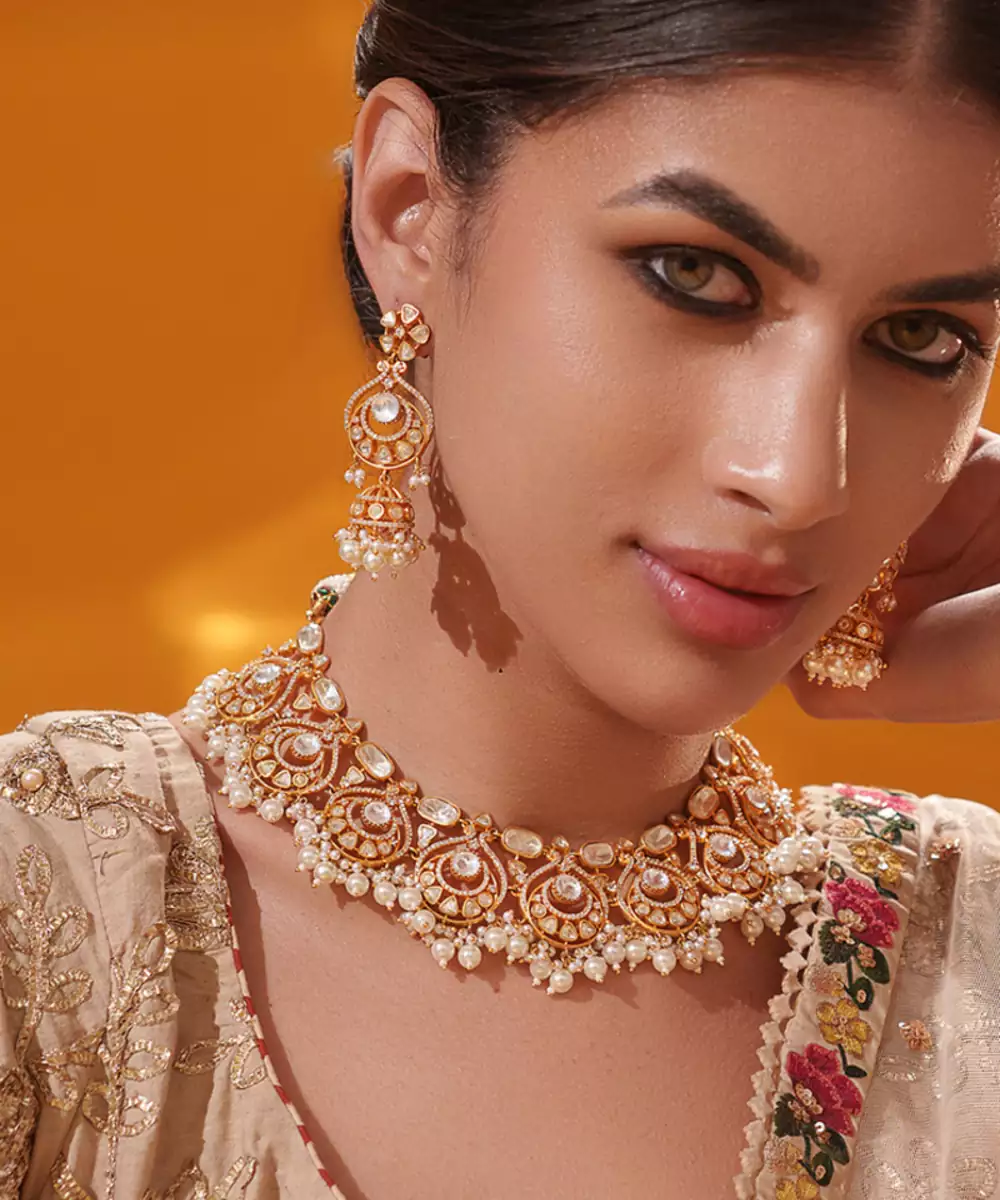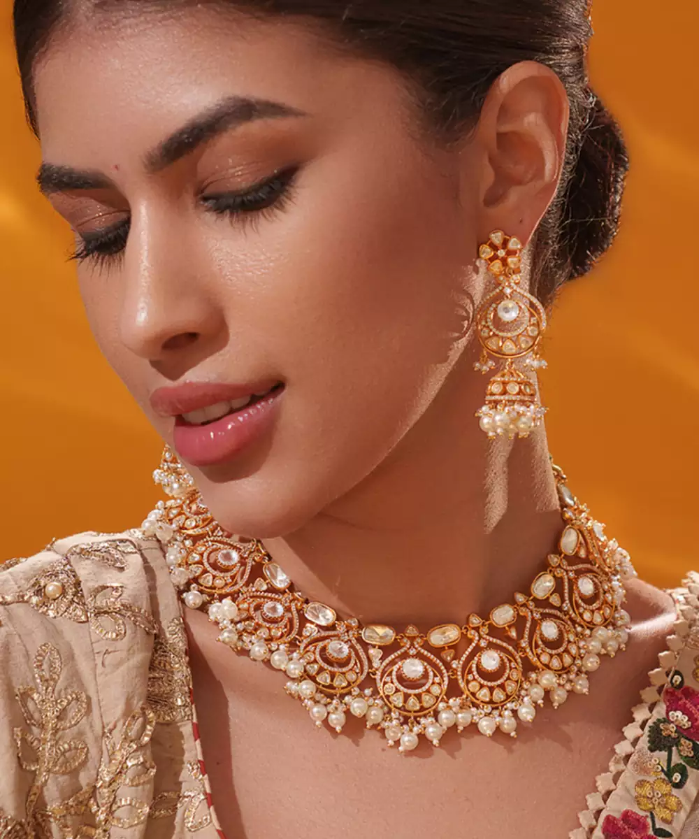 A Masterpiece Of Refined Elegance, Featuring Brilliant Moissanite Stones Set In An Intricate, Regal Design. It Comes With A Pair Of Matching Earrings. Perfect For Grand Occasions, It Adds A Touch Of Timeless Sophistication To Any Ensemble.