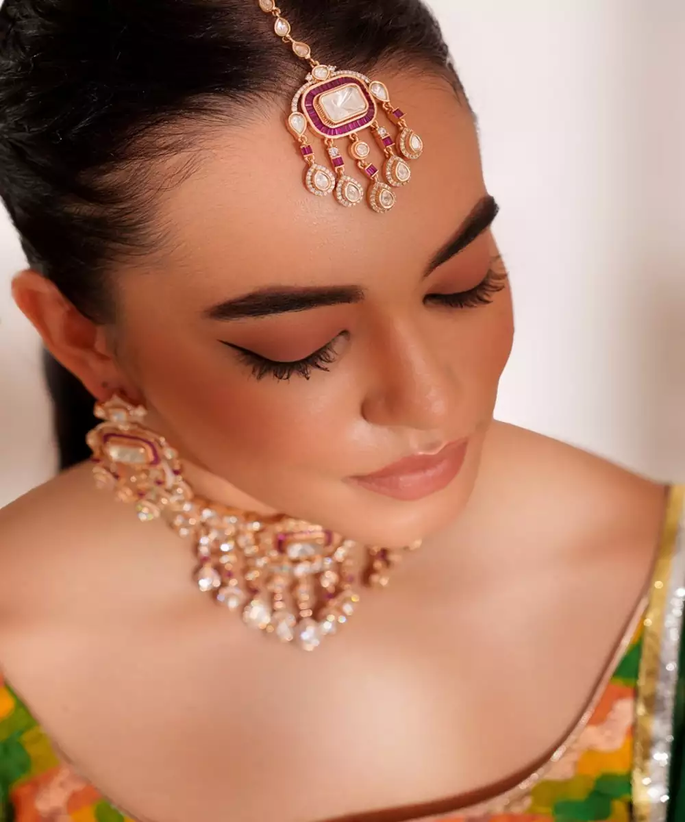 Components: 1 Necklace / 1 Pair Of Earrings / 1 Manng Tika