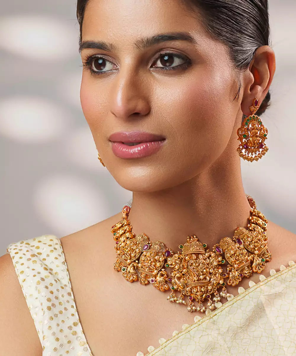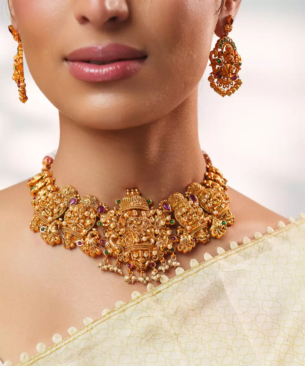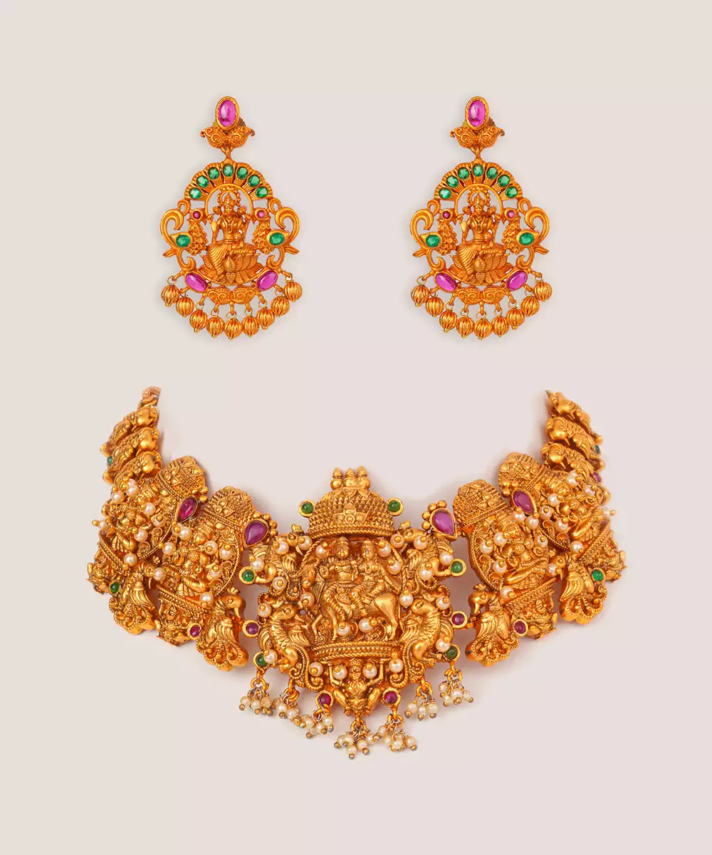 Gold Plated Temple Choker Necklace Set