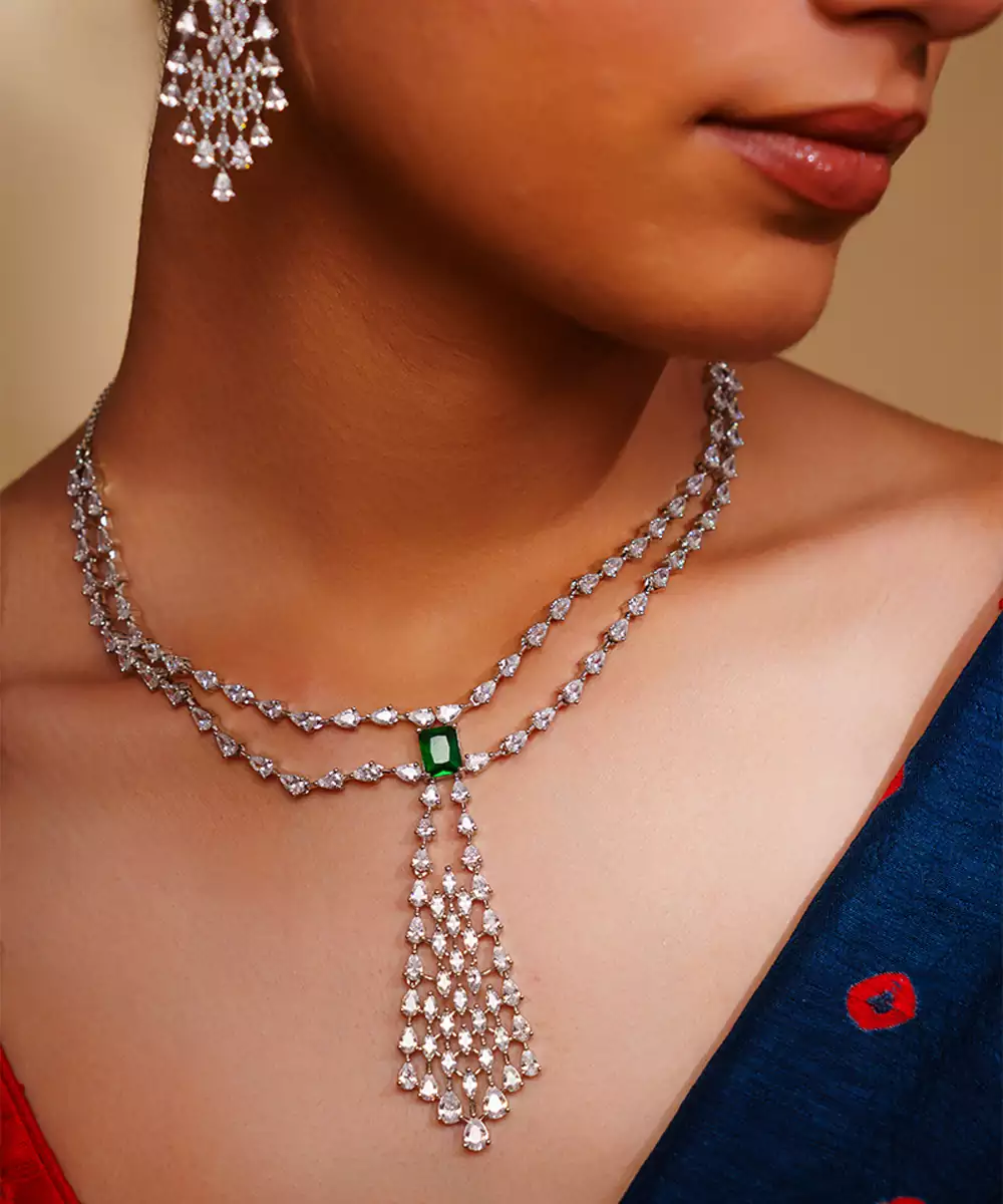 Featuring A White Finish Classy Diamond Pendant Necklace. It Comes With A Pair Of Matching Earrings. It Gives You A Luxurious And Sophisticated Appeal. Perfect For Every Occasion.