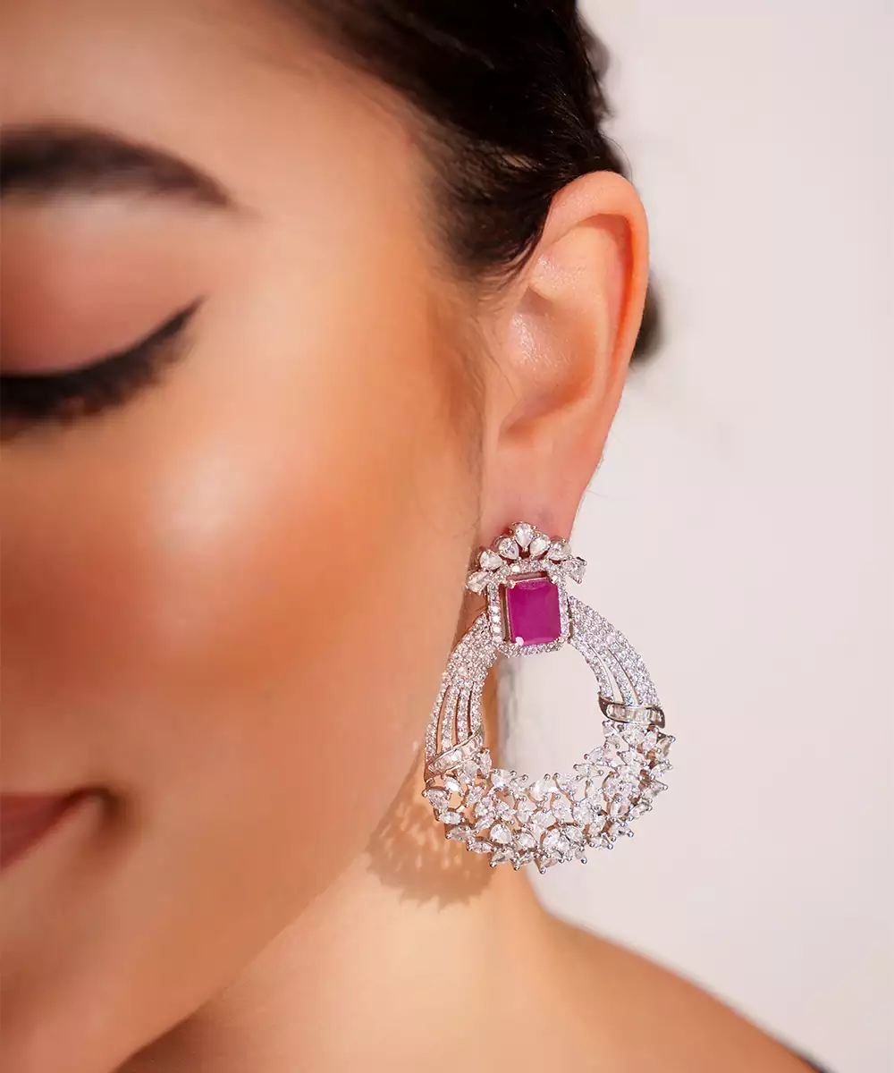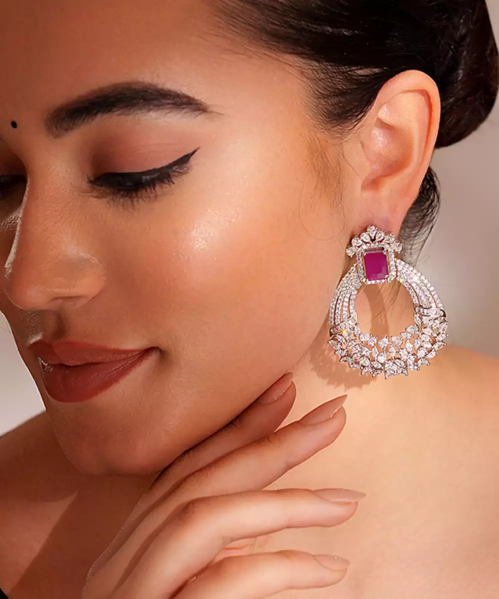 Featuring A Pair Of White Finish Diamond Hoops. It Is Perfect For Every Occasion And Looks Ravishing With Every Outfit.