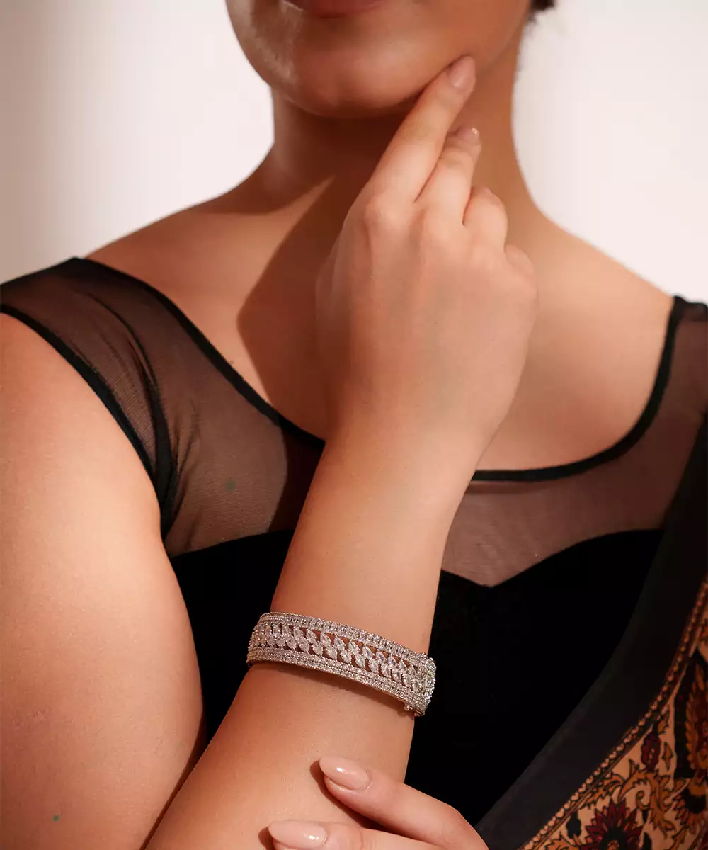 Featuring A White Finish Diamond Kada. It Is Perfect For Every Occasion And Looks Ravishing With Every Outfit.